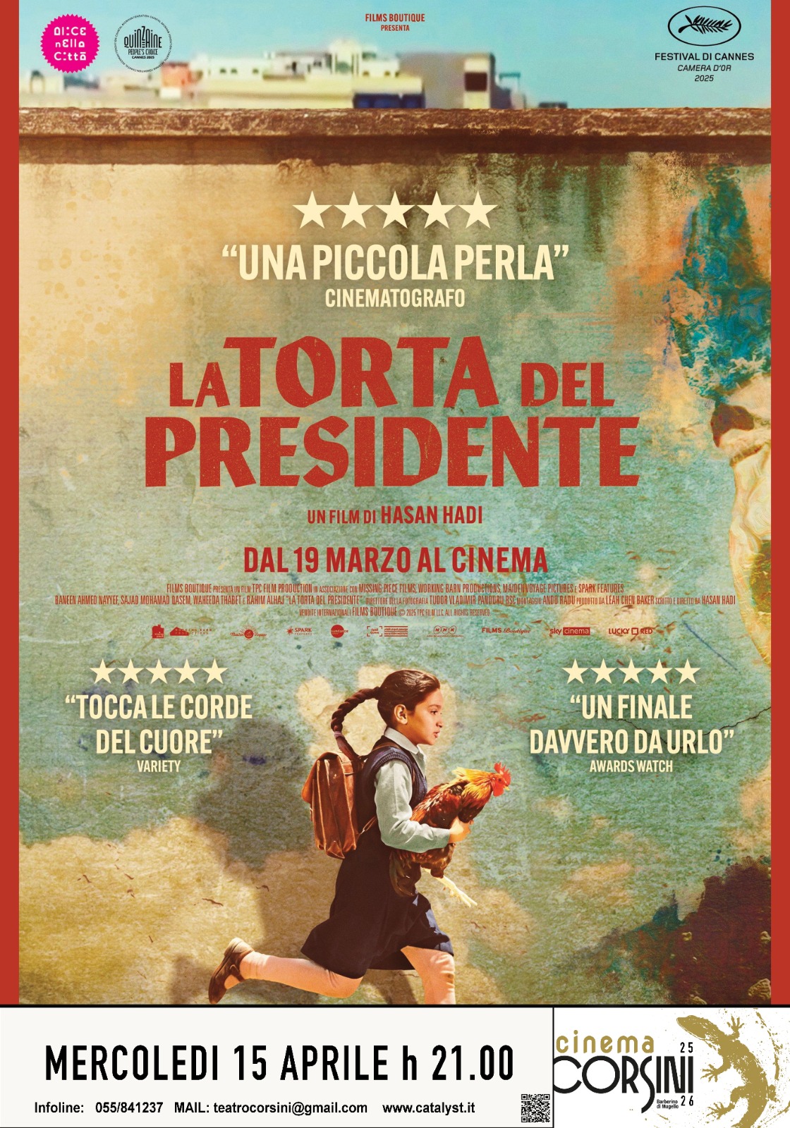 Mentre la popolazione dell’Iraq degli anni ’90 lotta per sopravvivere alla guerra e alla carestia, in tutte le scuole del Paese è obbligatorio preparare una torta per festeggiare il compleanno del Presidente Saddam Hussein. Nonostante le sue preghiere di non essere scelta, la piccola Lamia di 9 anni viene sorteggiata per questo ‘prestigioso’ compito. Giunta in città con la nonna, sfuggirà al suo controllo per cercare gli ingredienti necessari per la torta. Insieme al suo amico Saeed e al suo gallo andrà incontro a una serie di peripezie a volte avventurose a volte pericolose, ma anche buffe riuscendo alla fine – forse – nel suo intento.